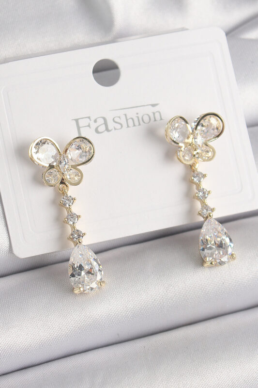 Bouquet Bouqtique Pirinç Gold Renk Zirkon Taşlı Kelebek Model Sallantı Damla Zirkon Taş Kadın Küpe BQT35BKP9860