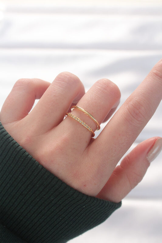 Bouquet Bouqtique 2li Görünümlü Su Yolu Tasarımlı Gold Renk Ayarlanabilir Yüzük BQT35BYK3136