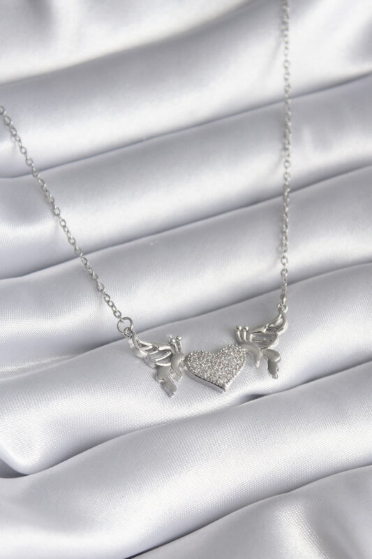Bouquet Bouqtique 316L Çelik Gümüş Renk Zirkon Taşlı Kanat Kalp Model Kadın Kolye BQT35BKO8289