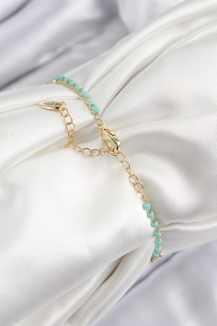 Bouquet Boutique Pirinç Zirkon Taşlı Mavi Boncuklu Model Gold Renk Kadın Bileklik